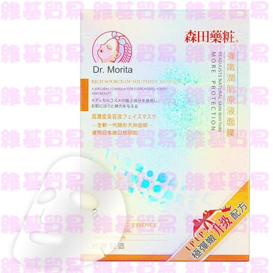 森田藥妝森田藥粧彈嫩潤肌原液面膜商品相關資訊!!商品規格:8入裝/盒.12盒/箱.4.1公斤/箱商品國際條碼:47126